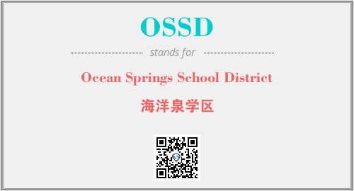 上述内容是“Ocean Springs School District”作为“OSSD”的缩写,解释为“海洋泉学区”时的信息,以及英文缩略词OSSD所代表的英文单词,其对应的中文拼音、详细解释以及在英文中的流行度和相关分类、应用领域及应用示例等。