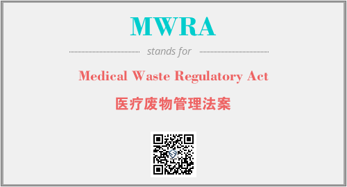 以上为Medical Waste Regulatory Act英文缩略词MWRA的中文解释,以及该英文缩写在英语的流行度、分类和应用领域方面的信息。