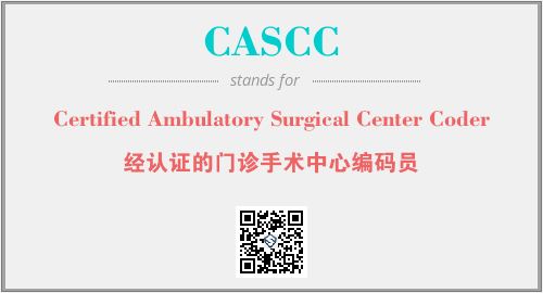 上述内容是“Certified Ambulatory Surgical Center Coder”作为“CASCC”的缩写,解释为“经认证的门诊手术中心编码员”时的信息,以及英文缩略词CASCC所代表的英文单词,其对应的中文拼音、详细解释以及在英文中的流行度和相关分类、应用领域及应用示例等。