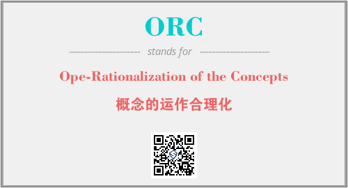 上述内容是“Ope-Rationalization of the Concepts”作为“ORC”的缩写,解释为“概念的运作合理化”时的信息,以及英文缩略词ORC所代表的英文单词,其对应的中文拼音、详细解释以及在英文中的流行度和相关分类、应用领域及应用示例等。