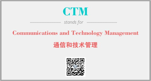 上述内容是“Communications and Technology Management”作为“CTM”的缩写,解释为“通信和技术管理”时的信息,以及英文缩略词CTM所代表的英文单词,其对应的中文拼音、详细解释以及在英文中的流行度和相关分类、应用领域及应用示例等。