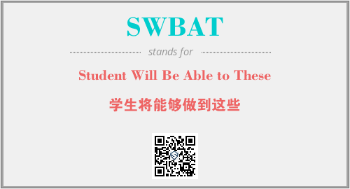 上述内容是“Student Will Be Able to These”作为“SWBAT”的缩写,解释为“学生将能够做到这些”时的信息,以及英文缩略词SWBAT所代表的英文单词,其对应的中文拼音、详细解释以及在英文中的流行度和相关分类、应用领域及应用示例等。