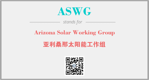上述内容是“Arizona Solar Working Group”作为“ASWG”的缩写,解释为“亚利桑那太阳能工作组”时的信息,以及英文缩略词ASWG所代表的英文单词,其对应的中文拼音、详细解释以及在英文中的流行度和相关分类、应用领域及应用示例等。