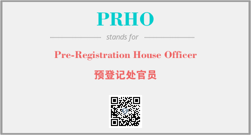 上述内容是“Pre-Registration House Officer”作为“PRHO”的缩写,解释为“预登记处官员”时的信息,以及英文缩略词PRHO所代表的英文单词,其对应的中文拼音、详细解释以及在英文中的流行度和相关分类、应用领域及应用示例等。