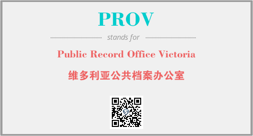 上述内容是“Public Record Office Victoria”作为“PROV”的缩写,解释为“维多利亚公共档案办公室”时的信息,以及英文缩略词PROV所代表的英文单词,其对应的中文拼音、详细解释以及在英文中的流行度和相关分类、应用领域及应用示例等。