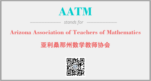 英文缩略词“AATM”经常作为“Arizona Association of Teachers of Mathematics”的英文缩写来使用,中文表示:“亚利桑那州数学教师协会”。本文将详细介绍英文缩写词AATM所代表英文单词,其对应的中文拼音、详细解释以及在英语中的流行度。此外,还有关于缩略词AATM的分类、应用领域及相关应用示例等。