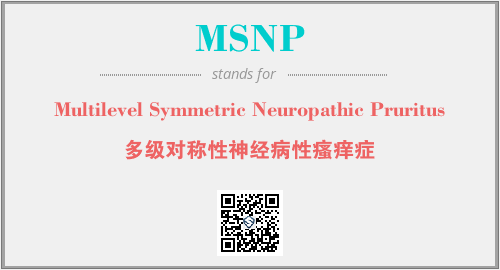 上述内容是“Multilevel Symmetric Neuropathic Pruritus”作为“MSNP”的缩写,解释为“多级对称性神经病性瘙痒症”时的信息,以及英文缩略词MSNP所代表的英文单词,其对应的中文拼音、详细解释以及在英文中的流行度和相关分类、应用领域及应用示例等。