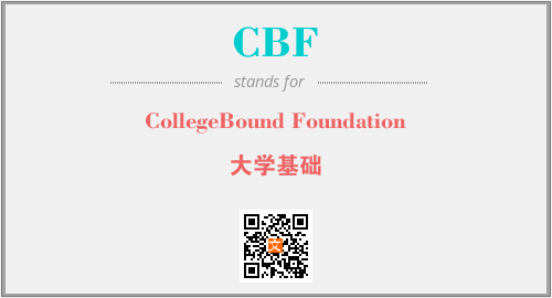 英文缩略词“CBF”经常作为“CollegeBound Foundation”的英文缩写来使用,中文表示:“大学基础”。本文将详细介绍英文缩写词CBF所代表英文单词,其对应的中文拼音、详细解释以及在英语中的流行度。此外,还有关于缩略词CBF的分类、应用领域及相关应用示例等。