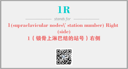 上述内容是“1(supraclavicular nodes\' station number) Right (side)”作为“1R”的缩写,解释为“1(锁骨上淋巴结的站号)右侧”时的信息,以及英文缩略词1R所代表的英文单词,其对应的中文拼音、详细解释以及在英文中的流行度和相关分类、应用领域及应用示例等。