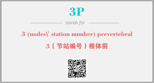 上述内容是“3 (nodes\' station number) prevertebral”作为“3P”的缩写,解释为“3(节站编号)椎体前”时的信息,以及英文缩略词3P所代表的英文单词,其对应的中文拼音、详细解释以及在英文中的流行度和相关分类、应用领域及应用示例等。