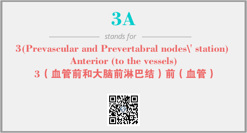 上述内容是“3(Prevascular and Prevertabral nodes\' station) Anterior (to the vessels)”作为“3A”的缩写,解释为“3(血管前和大脑前淋巴结)前(血管)”时的信息,以及英文缩略词3A所代表的英文单词,其对应的中文拼音、详细解释以及在英文中的流行度和相关分类、应用领域及应用示例等。