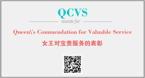 上述内容是“Queen\'s Commendation for Valuable Service”作为“QCVS”的缩写,解释为“女王对宝贵服务的表彰”时的信息,以及英文缩略词QCVS所代表的英文单词,其对应的中文拼音、详细解释以及在英文中的流行度和相关分类、应用领域及应用示例等。