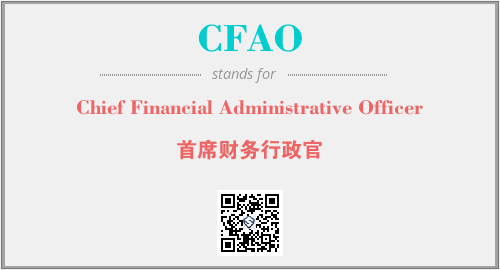 英文缩略词“CFAO”经常作为“Chief Financial Administrative Officer”的英文缩写来使用,中文表示:“首席财务行政官”。本文将详细介绍英文缩写词CFAO所代表英文单词,其对应的中文拼音、详细解释以及在英语中的流行度。此外,还有关于缩略词CFAO的分类、应用领域及相关应用示例等。