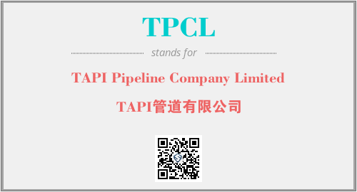 英文缩略词“TPCL”经常作为“TAPI Pipeline Company Limited”的英文缩写来使用,中文表示:“TAPI管道有限公司”。本文将详细介绍英文缩写词TPCL所代表英文单词,其对应的中文拼音、详细解释以及在英语中的流行度。此外,还有关于缩略词TPCL的分类、应用领域及相关应用示例等。