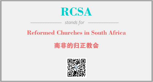 英文缩略词“RCSA”经常作为“Reformed Churches in South Africa”的英文缩写来使用,中文表示:“南非的归正教会”。本文将详细介绍英文缩写词RCSA所代表英文单词,其对应的中文拼音、详细解释以及在英语中的流行度。此外,还有关于缩略词RCSA的分类、应用领域及相关应用示例等。