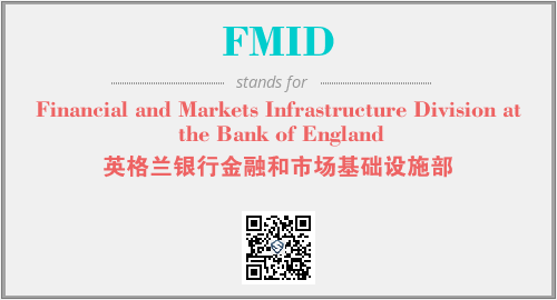 上述内容是“Financial and Markets Infrastructure Division at the Bank of England”作为“FMID”的缩写,解释为“英格兰银行金融和市场基础设施部”时的信息,以及英文缩略词FMID所代表的英文单词,其对应的中文拼音、详细解释以及在英文中的流行度和相关分类、应用领域及应用示例等。