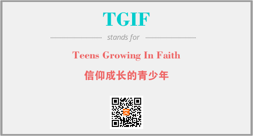 以上为Teens Growing In Faith英文缩略词TGIF的中文解释,以及该英文缩写在英语的流行度、分类和应用领域方面的信息。