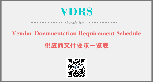 上述内容是“Vendor Documentation Requirement Schedule”作为“VDRS”的缩写,解释为“供应商文件要求一览表”时的信息,以及英文缩略词VDRS所代表的英文单词,其对应的中文拼音、详细解释以及在英文中的流行度和相关分类、应用领域及应用示例等。