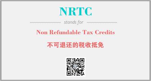 英文缩略词“NRTC”经常作为“Non Refundable Tax Credits”的英文缩写来使用,中文表示:“不可退还的税收抵免”。本文将详细介绍英文缩写词NRTC所代表英文单词,其对应的中文拼音、详细解释以及在英语中的流行度。此外,还有关于缩略词NRTC的分类、应用领域及相关应用示例等。