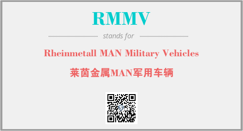 英文缩略词“RMMV”经常作为“Rheinmetall MAN Military Vehicles”的英文缩写来使用,中文表示:“莱茵金属MAN军用车辆”。本文将详细介绍英文缩写词RMMV所代表英文单词,其对应的中文拼音、详细解释以及在英语中的流行度。此外,还有关于缩略词RMMV的分类、应用领域及相关应用示例等。
