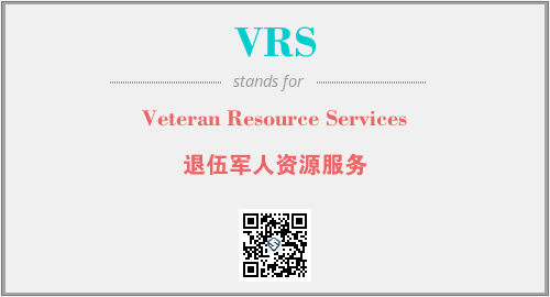 英文缩略词“VRS”经常作为“Veteran Resource Services”的英文缩写来使用,中文表示:“退伍军人资源服务”。本文将详细介绍英文缩写词VRS所代表英文单词,其对应的中文拼音、详细解释以及在英语中的流行度。此外,还有关于缩略词VRS的分类、应用领域及相关应用示例等。