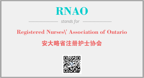 上述内容是“Registered Nurses\' Association of Ontario”作为“RNAO”的缩写,解释为“安大略省注册护士协会”时的信息,以及英文缩略词RNAO所代表的英文单词,其对应的中文拼音、详细解释以及在英文中的流行度和相关分类、应用领域及应用示例等。