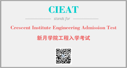 上述内容是“Crescent Institute Engineering Admission Test”作为“CIEAT”的缩写,解释为“新月学院工程入学考试”时的信息,以及英文缩略词CIEAT所代表的英文单词,其对应的中文拼音、详细解释以及在英文中的流行度和相关分类、应用领域及应用示例等。
