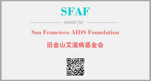 英文缩略词“SFAF”经常作为“San Francisco AIDS Foundation”的英文缩写来使用,中文表示:“旧金山艾滋病基金会”。本文将详细介绍英文缩写词SFAF所代表英文单词,其对应的中文拼音、详细解释以及在英语中的流行度。此外,还有关于缩略词SFAF的分类、应用领域及相关应用示例等。