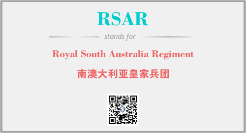 上述内容是“Royal South Australia Regiment”作为“RSAR”的缩写,解释为“南澳大利亚皇家兵团”时的信息,以及英文缩略词RSAR所代表的英文单词,其对应的中文拼音、详细解释以及在英文中的流行度和相关分类、应用领域及应用示例等。