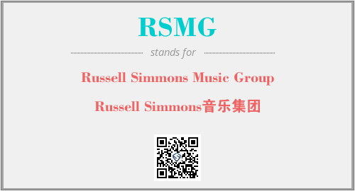 上述内容是“Russell Simmons Music Group”作为“RSMG”的缩写,解释为“Russell Simmons音乐集团”时的信息,以及英文缩略词RSMG所代表的英文单词,其对应的中文拼音、详细解释以及在英文中的流行度和相关分类、应用领域及应用示例等。