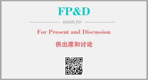 以上为For Present and Discussion英文缩略词FP&D的中文解释,以及该英文缩写在英语的流行度、分类和应用领域方面的信息。
