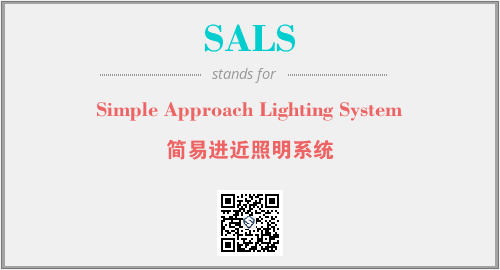 英文缩略词“SALS”经常作为“Simple Approach Lighting System”的英文缩写来使用,中文表示:“简易进近照明系统”。本文将详细介绍英文缩写词SALS所代表英文单词,其对应的中文拼音、详细解释以及在英语中的流行度。此外,还有关于缩略词SALS的分类、应用领域及相关应用示例等。