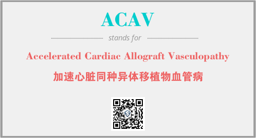 以上为Accelerated Cardiac Allograft Vasculopathy英文缩略词ACAV的中文解释,以及该英文缩写在英语的流行度、分类和应用领域方面的信息。