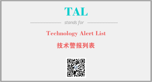 以上为Technology Alert List英文缩略词TAL的中文解释,以及该英文缩写在英语的流行度、分类和应用领域方面的信息。