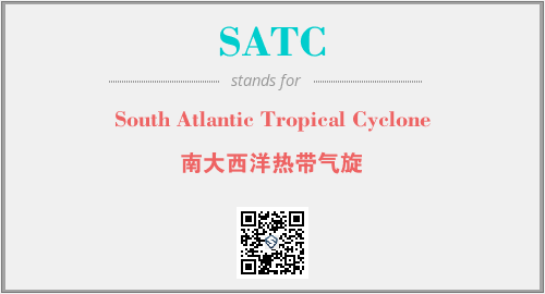 英文缩略词“SATC”经常作为“South Atlantic Tropical Cyclone”的英文缩写来使用,中文表示:“南大西洋热带气旋”。本文将详细介绍英文缩写词SATC所代表英文单词,其对应的中文拼音、详细解释以及在英语中的流行度。此外,还有关于缩略词SATC的分类、应用领域及相关应用示例等。