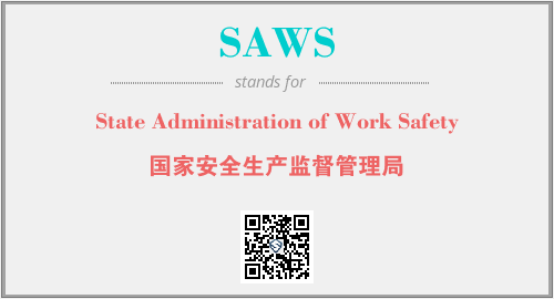 上述内容是“State Administration of Work Safety”作为“SAWS”的缩写,解释为“国家安全生产监督管理局”时的信息,以及英文缩略词SAWS所代表的英文单词,其对应的中文拼音、详细解释以及在英文中的流行度和相关分类、应用领域及应用示例等。