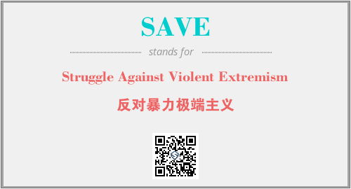 上述内容是“Struggle Against Violent Extremism”作为“SAVE”的缩写,解释为“反对暴力极端主义”时的信息,以及英文缩略词SAVE所代表的英文单词,其对应的中文拼音、详细解释以及在英文中的流行度和相关分类、应用领域及应用示例等。