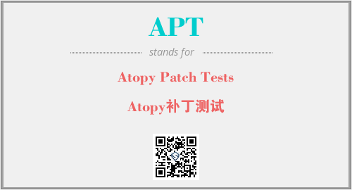 英文缩略词“APT”经常作为“Atopy Patch Tests”的英文缩写来使用,中文表示:“Atopy补丁测试”。本文将详细介绍英文缩写词APT所代表英文单词,其对应的中文拼音、详细解释以及在英语中的流行度。此外,还有关于缩略词APT的分类、应用领域及相关应用示例等。