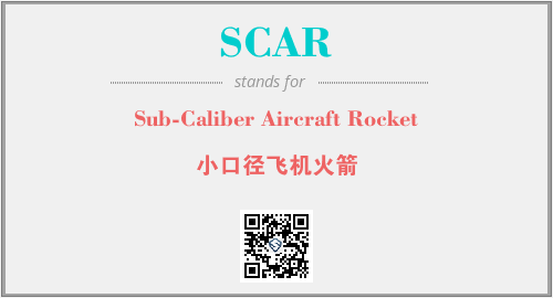 英文缩略词“SCAR”经常作为“Sub-Caliber Aircraft Rocket”的英文缩写来使用,中文表示:“小口径飞机火箭”。本文将详细介绍英文缩写词SCAR所代表英文单词,其对应的中文拼音、详细解释以及在英语中的流行度。此外,还有关于缩略词SCAR的分类、应用领域及相关应用示例等。