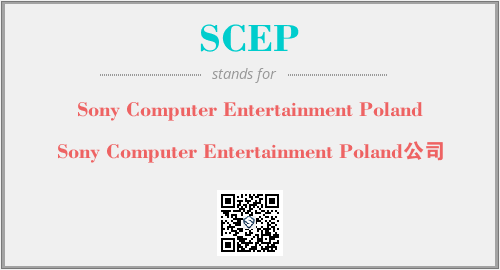 英文缩略词“SCEP”经常作为“Sony Computer Entertainment Poland”的英文缩写来使用,中文表示:“Sony Computer Entertainment Poland公司”。本文将详细介绍英文缩写词SCEP所代表英文单词,其对应的中文拼音、详细解释以及在英语中的流行度。此外,还有关于缩略词SCEP的分类、应用领域及相关应用示例等。