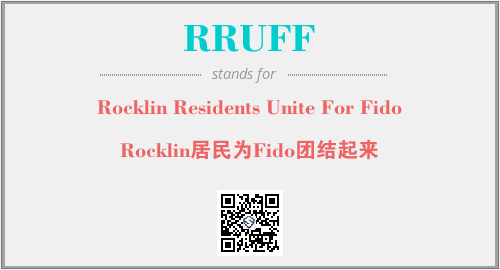 上述内容是“Rocklin Residents Unite For Fido”作为“RRUFF”的缩写,解释为“Rocklin居民为Fido团结起来”时的信息,以及英文缩略词RRUFF所代表的英文单词,其对应的中文拼音、详细解释以及在英文中的流行度和相关分类、应用领域及应用示例等。