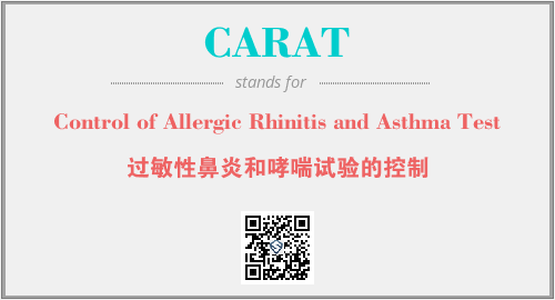 上述内容是“Control of Allergic Rhinitis and Asthma Test”作为“CARAT”的缩写,解释为“过敏性鼻炎和哮喘试验的控制”时的信息,以及英文缩略词CARAT所代表的英文单词,其对应的中文拼音、详细解释以及在英文中的流行度和相关分类、应用领域及应用示例等。