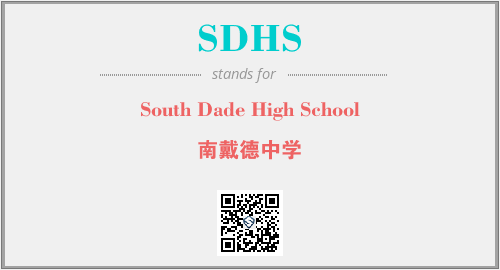 上述内容是“South Dade High School”作为“SDHS”的缩写,解释为“南戴德中学”时的信息,以及英文缩略词SDHS所代表的英文单词,其对应的中文拼音、详细解释以及在英文中的流行度和相关分类、应用领域及应用示例等。