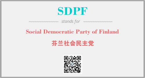 上述内容是“Social Democratic Party of Finland”作为“SDPF”的缩写,解释为“芬兰社会民主党”时的信息,以及英文缩略词SDPF所代表的英文单词,其对应的中文拼音、详细解释以及在英文中的流行度和相关分类、应用领域及应用示例等。