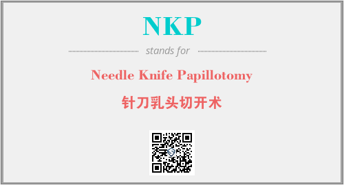 上述内容是“Needle Knife Papillotomy”作为“NKP”的缩写,解释为“针刀乳头切开术”时的信息,以及英文缩略词NKP所代表的英文单词,其对应的中文拼音、详细解释以及在英文中的流行度和相关分类、应用领域及应用示例等。