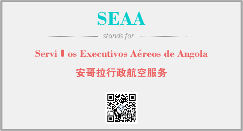 英文缩略词“SEAA”经常作为“Serviços Executivos Aéreos de Angola”的英文缩写来使用,中文表示:“安哥拉行政航空服务”。本文将详细介绍英文缩写词SEAA所代表英文单词,其对应的中文拼音、详细解释以及在英语中的流行度。此外,还有关于缩略词SEAA的分类、应用领域及相关应用示例等。