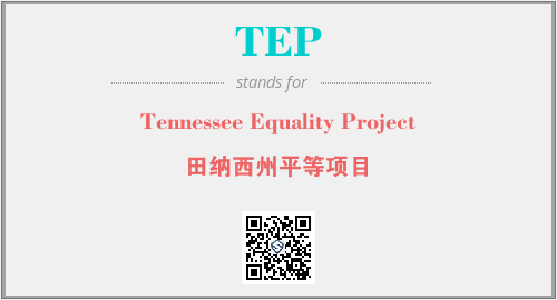 上述内容是“Tennessee Equality Project”作为“TEP”的缩写,解释为“田纳西州平等项目”时的信息,以及英文缩略词TEP所代表的英文单词,其对应的中文拼音、详细解释以及在英文中的流行度和相关分类、应用领域及应用示例等。