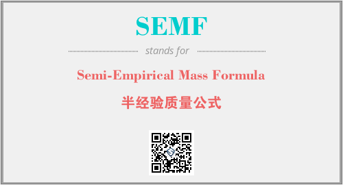 上述内容是“Semi-Empirical Mass Formula”作为“SEMF”的缩写,解释为“半经验质量公式”时的信息,以及英文缩略词SEMF所代表的英文单词,其对应的中文拼音、详细解释以及在英文中的流行度和相关分类、应用领域及应用示例等。