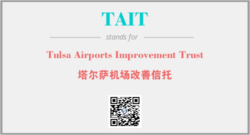 上述内容是“Tulsa Airports Improvement Trust”作为“TAIT”的缩写,解释为“塔尔萨机场改善信托”时的信息,以及英文缩略词TAIT所代表的英文单词,其对应的中文拼音、详细解释以及在英文中的流行度和相关分类、应用领域及应用示例等。