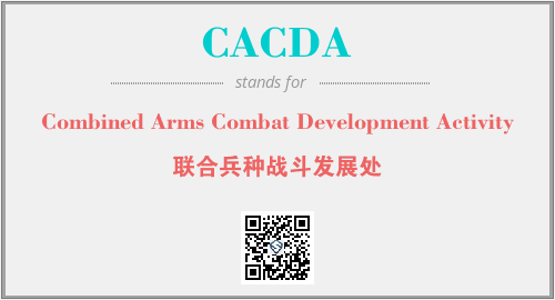 英文缩略词“CACDA”经常作为“Combined Arms Combat Development Activity”的英文缩写来使用,中文表示:“联合兵种战斗发展处”。本文将详细介绍英文缩写词CACDA所代表英文单词,其对应的中文拼音、详细解释以及在英语中的流行度。此外,还有关于缩略词CACDA的分类、应用领域及相关应用示例等。